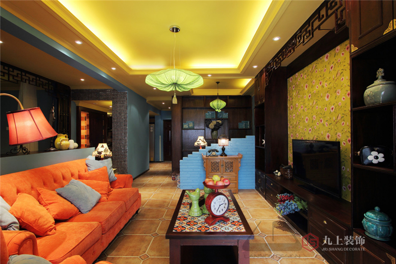 客廳絢爛的的顏色讓人在疲累的生活中感受無限的活力。