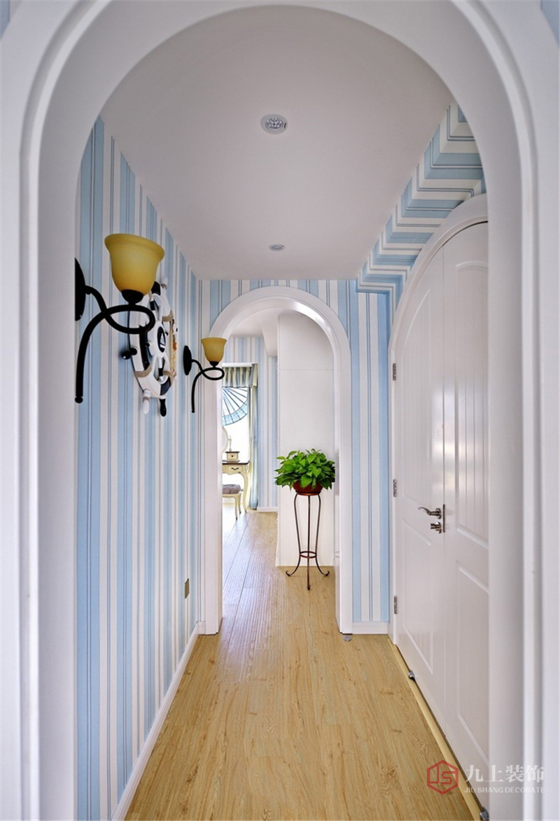 QQ咨詢:“地中海風(fēng)格”對(duì)中國(guó)城市家居的最大魅力,來(lái)自其純美的色彩組合。這套裝修案例顏色以藍(lán)與白為主,在裝飾方面融入了多種海洋元素,還有弧形鏡子和拱形門(mén)的應(yīng)用,極具地中海特色。