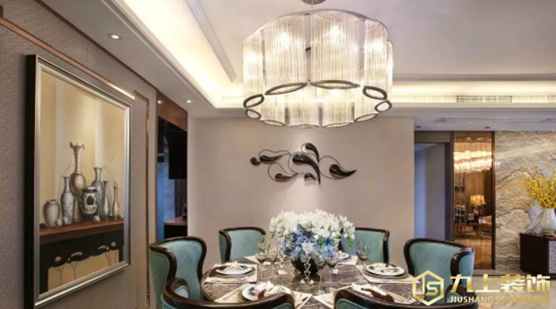 自然紋理的電視墻、地板,以及墨綠色餐椅,通過柔和、協(xié)調(diào)的大地色襯托著永不過時的時尚。