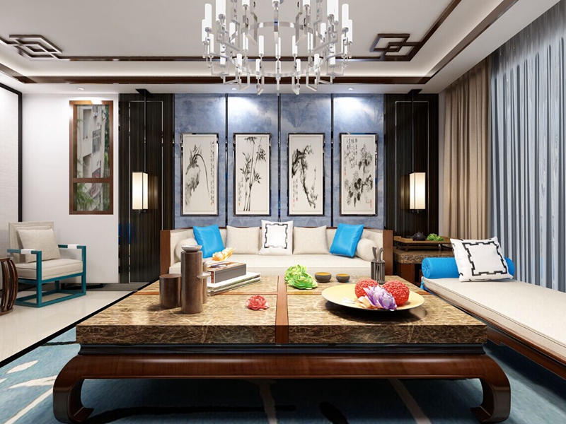 新中式風格在設計上提煉了其中經典元素并加以簡化和豐富,在家具形態上更加簡潔清秀,同時又打破了傳統中式空間布局中等級、尊卑等文化思想,空間配色上也更為輕松自然。