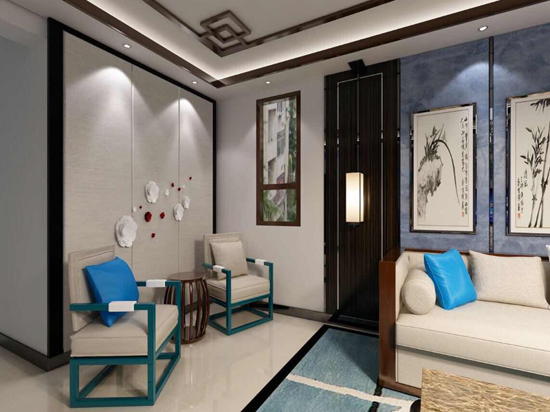 QQ咨詢:本方案整體設計以新中式風格為主,設計中將現代元素和中國傳統元素相結合,體現了中國式的古典美,一些家具的選配上主要體現了現代風格的簡約美。在家具形態上更加簡潔清秀,同時又打破了傳統中式空間布局中等級、尊卑等文化思想,空間配色上也更為輕松自然。