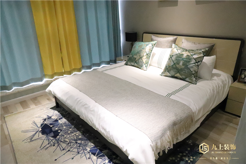 沒(méi)有做復(fù)雜的吊頂,主要是以顏色搭配取勝,由于空間的局限性,裝友們可以考慮把衣柜和書(shū)柜連體定制,在收納和美觀上要更能滿足生活要求和裝飾要求。