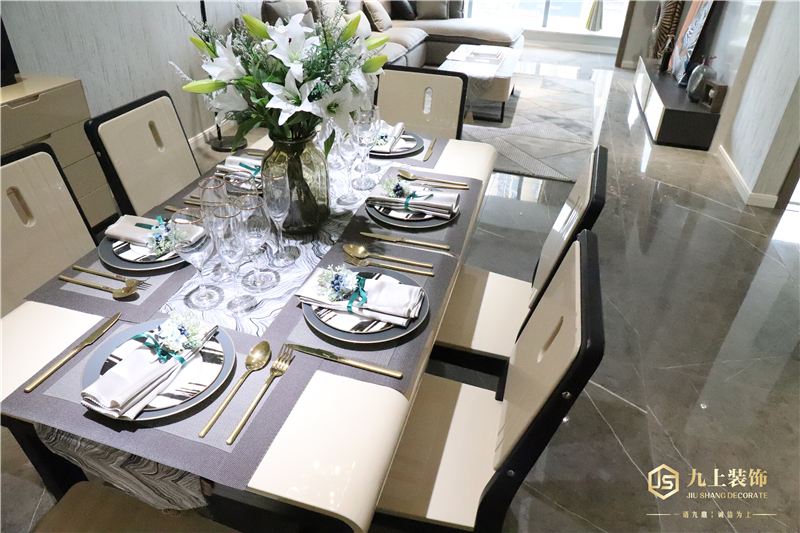 小編個(gè)人比較喜歡這一組廣安九上裝飾的餐廳設(shè)計(jì),黑白的色調(diào),加上灰色的地板,以及時(shí)尚的燈具搭配,很有現(xiàn)代簡(jiǎn)約風(fēng)格的味道。