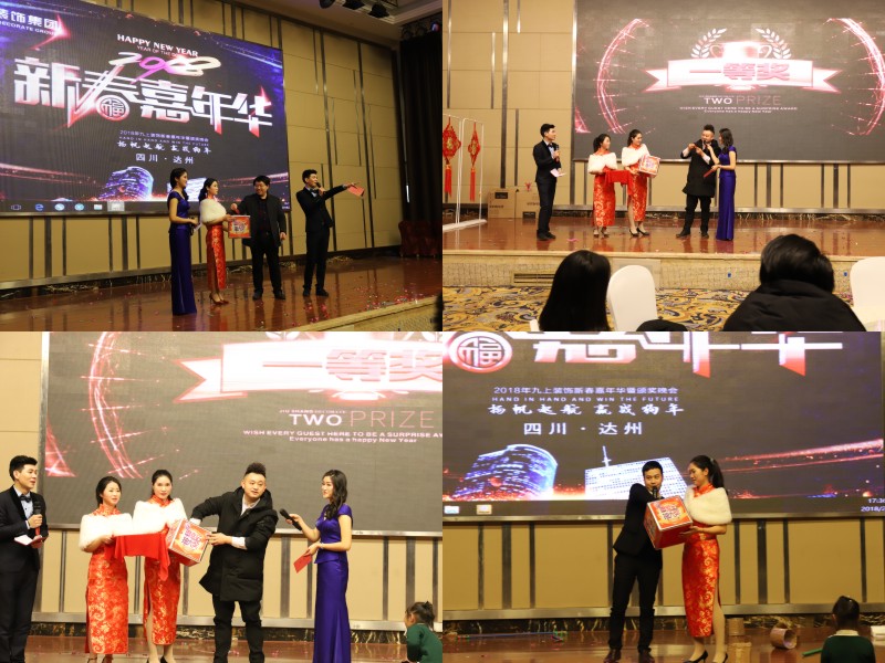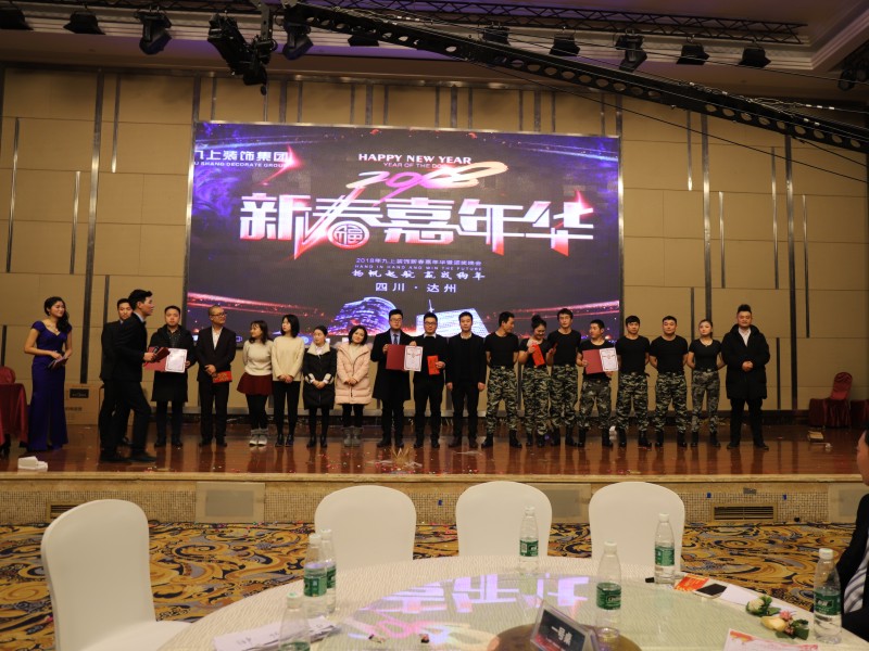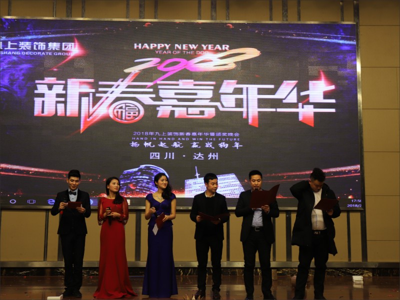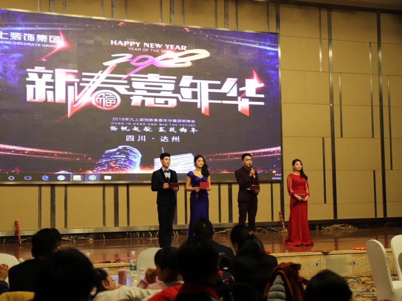 2018年2月2日,“新起點 新跨越”暨九上裝飾2018年“瑞狗迎春”迎新盛典在達州鳳凰大酒店3樓鳳凰廳舉行,九上裝飾全體員工與公司合作商歡聚一堂,共度聯歡。