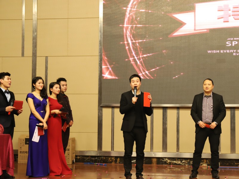 年會不僅給大家帶來了歡聲笑語,同時也讓同事之間彼此的心更加貼近。公司領導與員工親情互動、員工們的傾情演繹,讓歌聲、掌聲、歡呼聲一直在會場上蕩漾。整場晚會高潮迭起,呈現出九上這個大家庭的歡樂和諧。