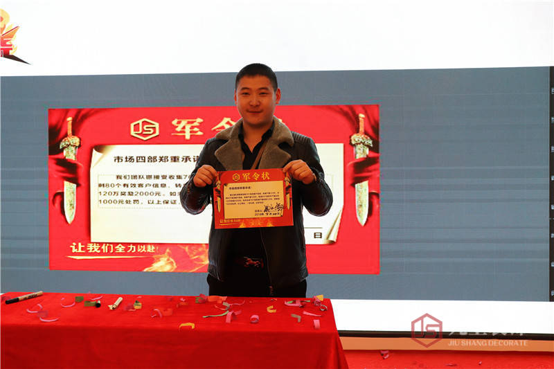 各戰隊司令員帶領我們的團隊立下軍令狀,用責任心證明你們的決心。各部門簽定3月目標軍令狀。