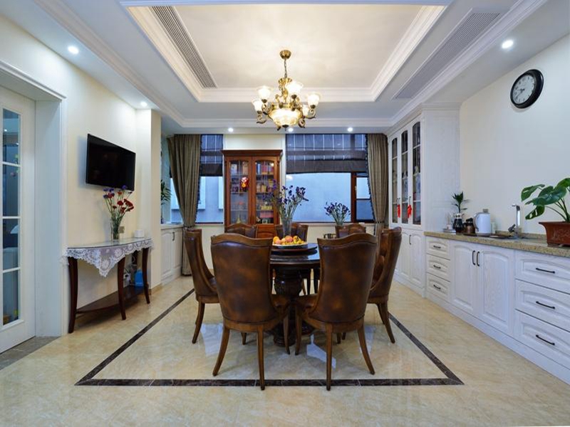 餐廳作為用餐區,保證滿足家人用餐之時,古樸的實木餐桌椅,椅子與桌子邊緣一般都有一定的雕刻和弧度,典型的美式風格。