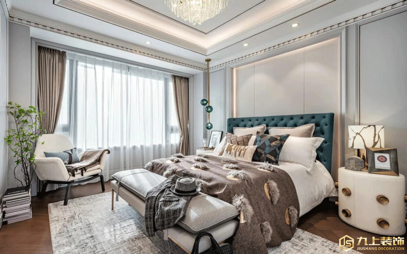 主臥融合藝術的家具,床品,配飾,在空間內表達對生活的的感受,觸感自然舒適的床品,展露休憩空間應有的安逸。