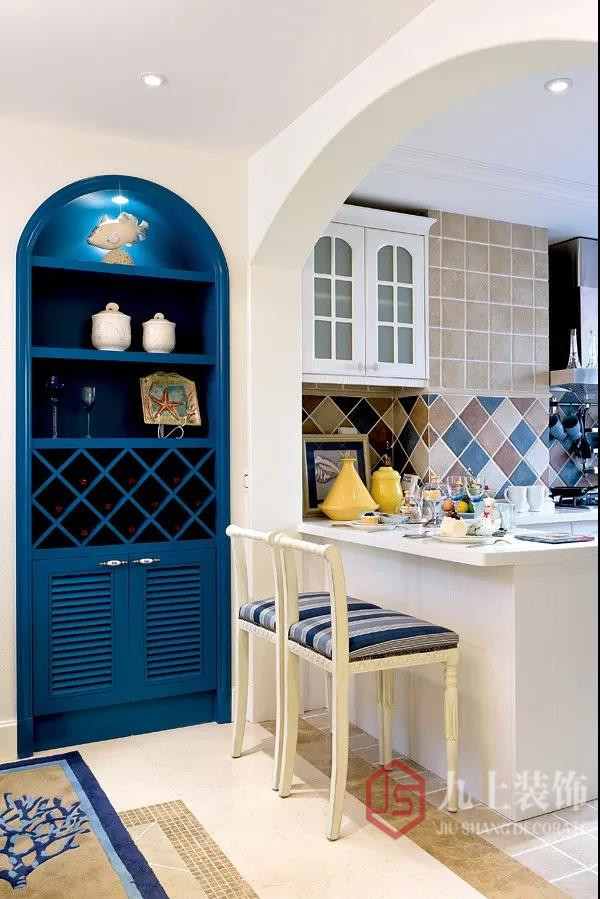 地中海風格裝修還通過以海洋的蔚藍色為基色調的顏色搭配方案,自然光線的巧妙運用,富有流線及夢幻色彩的線條等軟裝特點來表述其浪漫情懷