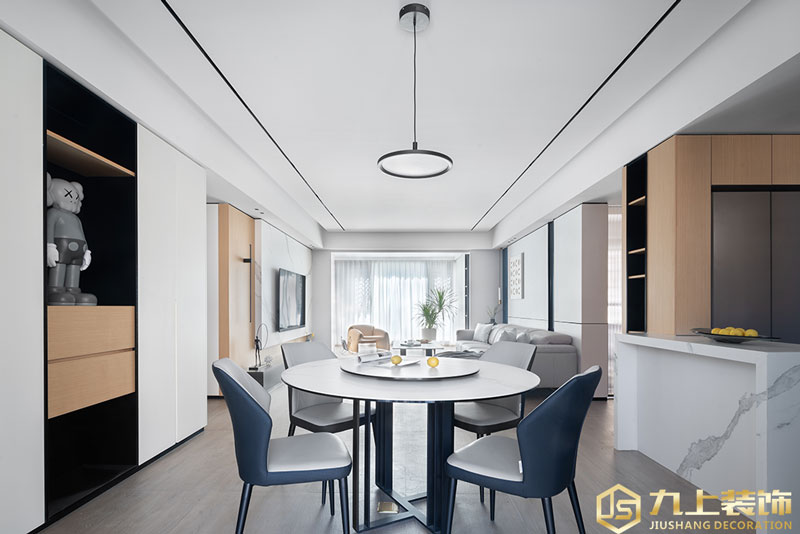兼顧實用性與美觀性的餐廳布局,摒棄傳統(tǒng)隔斷。以開敞式大平層的客餐廳設(shè)計,避免視覺上的壓迫感,給人心靈以釋放。