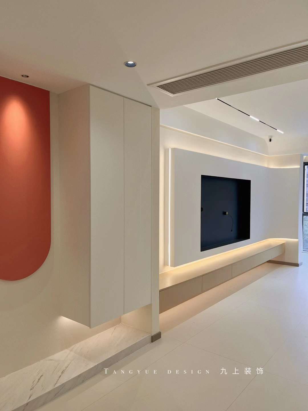 石膏板吊頂、電視背景墻、乳膠漆、墻面鏟除、地面找平、地板/地磚、窗簾、燈具、沙發、茶幾、電視柜、鞋柜、餐桌、餐椅、電視機、空調。