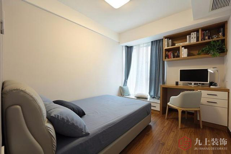 在床尾則是設(shè)置了飄窗與小書桌,而且在飄窗處還巧妙設(shè)計(jì)了榻榻米。