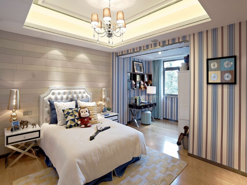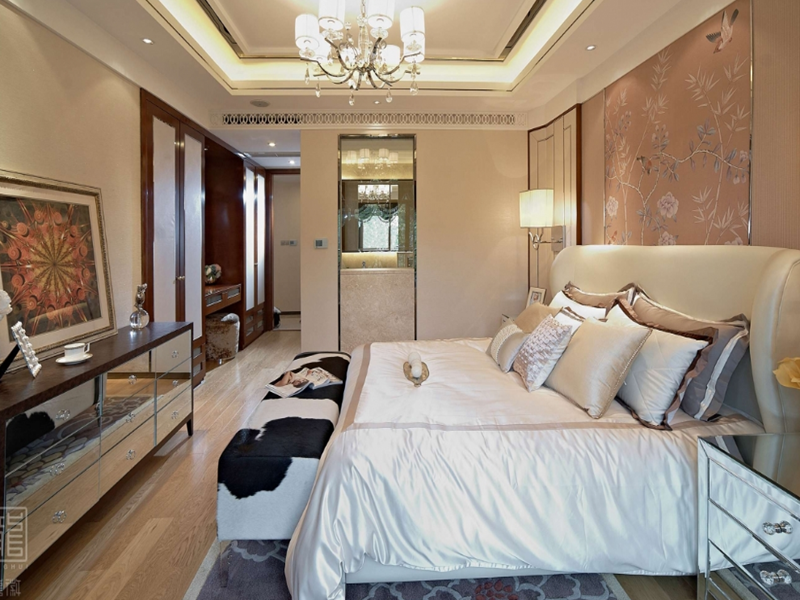 設(shè)計(jì)中將歐式與現(xiàn)代的設(shè)計(jì)同時(shí)融入其中,奢華感從中流露,款式新穎的吊燈在其中最為顯眼,木色的背景墻,給人完美的視覺盛宴,打造出了經(jīng)典居家空間。