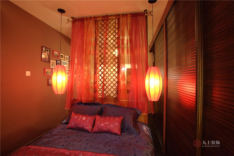 臥室家具及裝飾皆采用東南亞風濃烈的色彩,搭配夢幻曖昧的燈光,充滿異域情調。