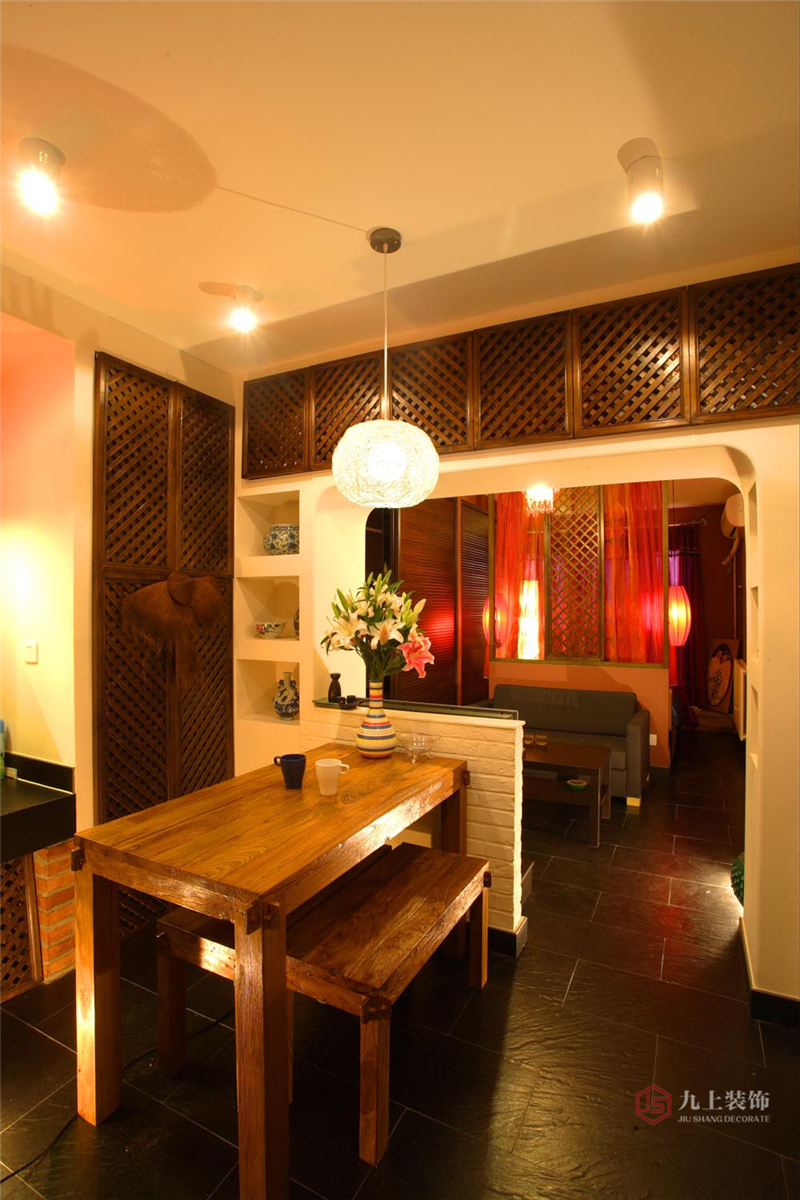 QQ咨詢:取材自然與手工工藝就決定了東南亞風格家居的色調——以木色調為主,或多為褐色等深色。又因為南亞地區氣候悶熱,為了避免空間的沉悶壓抑,因此在裝飾上用夸張艷麗的色彩沖破視覺的沉悶。