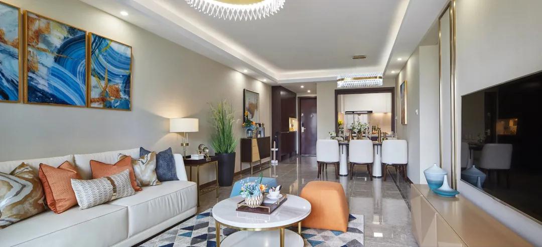 客廳客廳利用大色塊造型幾何給生活定調(diào),墻上掛畫如海浪撫過,一別手繪質(zhì)感所傳遞的粗獷,溫柔地梳開細(xì)密的紋理。