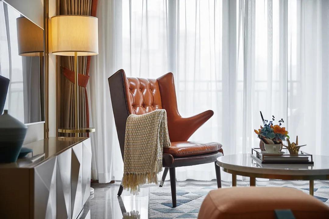 臥室以淺色調(diào)弱化主體飽和度,點(diǎn)綴的亮色元素在素雅空間碰撞出活力。幾何肌理,高低錯(cuò)落,靜雅的空間不失趣味,清風(fēng)曼紗,一室好眠。