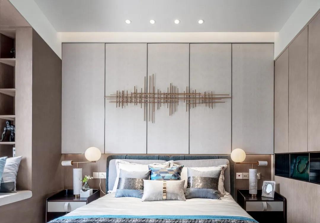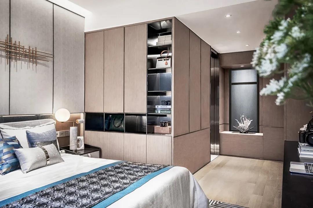 主臥主臥摒棄繁冗復雜的技巧,陳設氛圍充滿生活氣息,轉角式衣柜、充裕的行動空間,簡單舒適。床頭造型輔以金色系修飾,增添幾絲深意,讓生活和質感達到平衡。