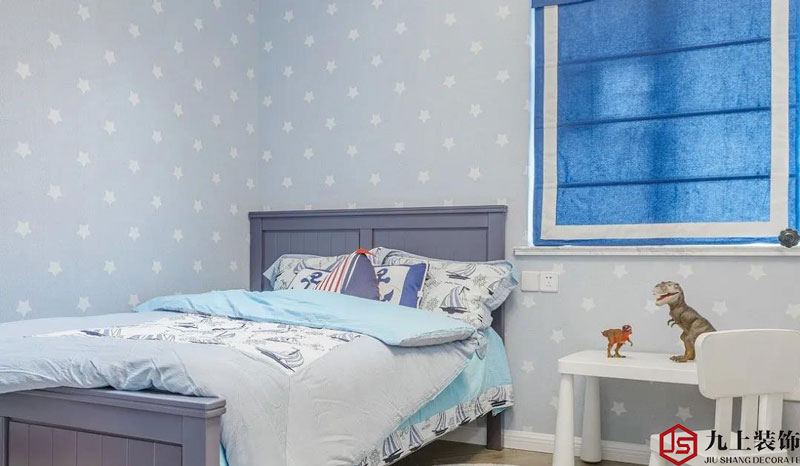兒童房用色清爽活潑,低飽和度的星星墻紙增添童趣,與家居軟飾達成風格統一